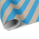 A rustic kraft coloured holiday wrapping paper featuring capri blue wide stripes on the diagonal.