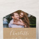 All in one wedding invitation featuring your special photo and elegant white signature script name and monogram initials on a rustic kraft background. The invitation includes a perforated RSVP card that’s can be individually addressed or left blank for you to handwrite your guest's address details. Designed by Thisisnotme©