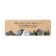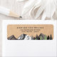 Elegant rustic wedding return address labels featuring beautiful snow capped mountains and pine trees with modern typography against a Kraft background.