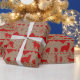 A kraft coloured wrapping paper featuring a Nordic sweater pattern of winter animals in red against a Kraft colour wrapping paper.