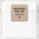 A personalized "handmade with love," 3" square sticker with a kraft paper background. Make it yours by adding your own name. A pretty finishing touch for all of your handmade gifts. Designed for you by Blackberry Boulevard.