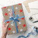 Rustic Kraft Red Silver Stars Holiday Wrapping Paper