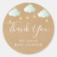 Rustic kraft twinkle sprinkle baby shower thank you, classic round sticker. Designed to coordinate with our Rustic kraft twinkle sprinkle baby shower collection. Featuring cute mint green clouds and golden stars on strings, on a rustic kraft background, these stickers are perfect for sealing envelopes and baby sprinkle favours. Add your celebration details in white to create the perfect sticker.