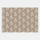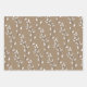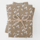 An elegant white holiday wrapping paper featuring a rustic kraft background with 3 patterns of small leaf stems.