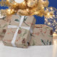 A rustic kraft holiday wrapping paper roll featuring a kraft coloured background with watercolor painted spruce branches, pine cones and red ilex berries.
