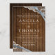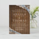 Steel blue ribbon and white lace rustic barn wood wedding invitation, country chic with romantic white lace and steel blue ribbon printed design. Bold hand script text for a unique country inspired wedding invitation set.