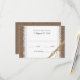 Country Romance wedding response card with dark rustic lace printed look design of jute twine with lace and burlap to compliment invitations. Customize text and fonts to suit your own style. The look of burlap with lace printed invitations are prefect for a country theme or rustic style wedding. All parts of these invitations are printed. There is no actual flower, twine, lace or burlap connected. Feel free to contact me for elements not represented here. I may be able to help.