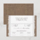 Country Romance wedding response card with dinner choice template. Dark rustic lace printed look design of lace and burlap to compliment invitations. Customize text and fonts to suit your own style. The look of burlap with lace printed invitations are prefect for a country theme or rustic style wedding. All parts of these invitations are printed. There is no actual flower, twine, lace or burlap connected. Feel free to contact me for elements not represented here. I may be able to help.