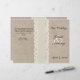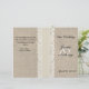 This custom wedding program is the perfect combination of traditional and trendy. The burlap-look background is perfect for a rustic or vintage themed wedding and the lace-look accent adds a classic, romantic touch. Coordinates with full collection of matching IVORY Save the Dates, RSVP cards, custom postage, and more! Email me for custom colours! NOTE - This is a high-quality image of burlap, lace, & ribbon; this invitation does not contain actual burlap, lace, or ribbon. Thanks!