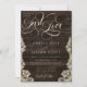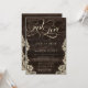 Rustic Lace Dark Wood Just Love Script Wedding Invitation