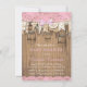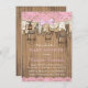 Mason jar baby shower invitation with pink lace and rustic wood background and mason jars. This rustic pink and brown mason jar baby shower invitation is easily customized for your event by adding your details in the font style and colour, and wording of your choice.
