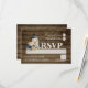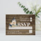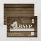 Lantern adorned with navy blue flowers and Rustic wood RSVP design response card to compliment our Vintage wood ladder with LOVE letters wedding invitation barn wood background.