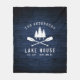 A beautiful, rustic themed fleece blanket, featuring your family name and "Lake House" or other desired text along with its established date and location. This custom, unique design features a white silhouette of crossed boat oars and pine trees on a print of wood planks in rich blue colours. To see more designs like this, feel free to visit my store here at "Zazzle.com/Rustic_Charm". Thanks.