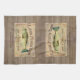 Man cave decor for your favorite fisherman (or woman)! Rustic Lakeside Cabin Large Mouth Bass Fishing kitchen towel has WELCOME and your family name personalized to greet your guest or vacation rental guests. Art was painted in watercolor by internationally licensed artist and product designer, Audrey Jeanne Roberts and reproduced on these high quality hand towels. Copyright.