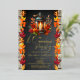 Birthday celebration design featuring a beautiful autumn lantern with lit candle as a centerpiece to a table arrangement of beautiful fall leaves in vibrant autumn splendour. The background features a chalkboard distressed design flanked on either side with gorgeous fall leaves, and backed by a rustic washed wood planks look background. Composite design by Holiday Hearts Designs.