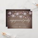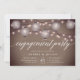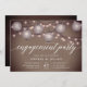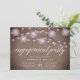 Our rustic elegant engagement party invitations feature a dark kraft background with strings of white lights and luminous paper lanterns across the top, and "engagement party" in chic calligraphy script typography. Personalize with your engagement celebration details beneath in white lettering.