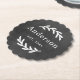This simply elegant custom monogrammed beverage coaster features white leafy laurel branches that frame a family last name. A beautiful keepsake gift for newlyweds or new homeowners. The rustic black background image can be removed and printed background colour can be modified so the design perfectly coordinates with your home decor.