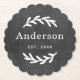 Rustic Laurel Branch Wreath Last Name Monogram Paper Coaster