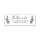 A rustic return address label featuring a modern script family name and simple return address surrounded by hand drawn laurel branches.