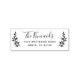 A rustic return address label featuring a modern script family name and simple return address surrounded by hand drawn laurel branches.