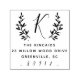 Custom return address stamps personalized with your family monogram and address featuring hand drawn laurel branches with berry accents and modern calligraphy script.