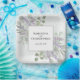 These elegant boho chic paper plates will add a special touch to your reception, rehearsal dinner, or other wedding celebrations. They feature a hand painted watercolor design with your names and the wedding date inside a white frame on a marbled dusty blue background surrounded by a bounty of lavender flowers, eucalyptus leaves, and foliage. Rustic and beautiful these plates are sure to please.