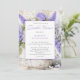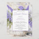 This bridal shower invitation features a rustic romantic floral design with soft lavender and purple blossoms and lush green foliage framing the layout. A vintage-style background with handwritten script and a decorative vase adds an elegant, timeless charm. The overall composition blends classic beauty with gentle whimsy, creating a warm and inviting tone perfect for celebrating love and new beginnings. The back of the card is a full version of the beautiful floral illustration. Personalize with your own information.
