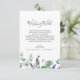 This rustic lavender wedding wishing well card is perfect for a simple and elegant outdoor wedding. The floral design features watercolor eucalyptus leaves and greenery with sprigs of purple wildflowers. Personalize this invitation enclosure card with your names, and a short wishing well poem.