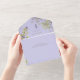AVAILABLE WITH OR WITHOUT A QR CODE. This design features lavender, pale blue, and white wildflowers with delicate greenery on a lavender background. Add a QR code to your invitation so that gusts can quickly access your wedding Website for details, directions, menu options, and more, or add your gift registry Web URL. Personalized All-In-One invitations are a unique combination of both a beautifully printed custom invitation with an easy to tear off perforated RSVP postcard. And they are so easy to use! You simply fold, then seal the back flap with the three included clear stickers, and mail. And when your guests receive your custom invite, they just tear the perforated RSVP Card off and drop it back in the mail to you!
