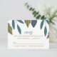 These RSVP cards are perfect for any couple planning a trendy modern wedding celebration. The design features stylish hand drawn foliage leaves in shades of blue and green on a clean white background and is finished with simple to edit wording. The simple design can be personalized to suit your special event and will be the perfect reply card for any floral themed party, including; bridal showers, engagements, wedding showers, birthday parties and much, much more.