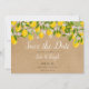 This botanical lemons blossom save the date card features an elegant script save the date above your details set in chic typography on a rustic kraft background. Designed by Thisisnotme©