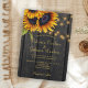 Elegant chic summer or fall wedding stylish invitation template on dark brown barn wood featuring a beautiful sunflowers bouquet and strings or twinkle lights. Fill in your information in the spots, You can choose to customize it further changing fonts and colours of lettering. --------- The invitation is suitable for elegant summer or autumn fall rustic country weddings. -- If you need assistance in customizing it, please contact me!