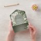 The combination of the dark sage green background, the white blur overlay, and the white floral frame creates a harmonious and visually striking composition. This wedding invitation design promises to capture the attention of recipients and convey the elegance and beauty of the upcoming celebration. Created by Simply Farmhouse Press.