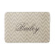 Custom printed bath mat rug with a trendy chevron pattern and rustic faux linen texture. Personalize it with your name monogram or other custom text. Click Customize It to change text and fonts to create a unique one of a kind gift.
