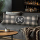 Rustic Linen Black Buffalo Plaid Pattern Monogram Body Pillow
