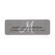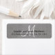 Monogram Rustic Wedding Invitation Return Address Label design with a printed photo of grey and white linen as a background, with a white script monogram and black text. Customizable Monogram Wedding Return Address Labels for your invitation envelopes. by Elke Clarke©. Customize with your monogram initial, names and address details. For other background photo effects contact store owner.