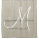 Personalized Rustic Linen Look Beige and White Monogram Wedding Gift Shower Curtain. Original artwork by Elke Clarke © Other