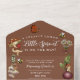 Celebrate your locally grown little sprout with this charming garden‑inspired baby shower invitation, designed with a warm chocolate brown background. Featuring whimsical illustrations of vegetables, flowers, butterflies, and mushrooms, this all‑in‑one card includes space for event details, RSVP information, registry notes, and a special “bring a book instead of a card” request. Perfect for nature‑themed, rustic, or farmer’s market‑style showers, it’s easy to personalize with your names, venue, and date.