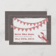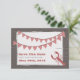 A rustic beach wedding save the date featuring an illustration on front of red gingham bunting and an illustration of a lobster over a barnwood background.