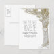 Modern yet vintage very romantic save the date postcard with wooden love heart tree drawing.