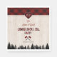Unique card design featuring red buffalo plaid, forest silhouette, a red buffalo plaid heart for monogram, hatchets, gorgeous LUMBERJACK & JILL PARTY script with red plaid effect, on a washed wood background. Use Customise tool to add your info. For matching items please, visit my Lumberjack and Jill Party.