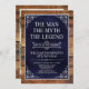 He IS The Man The Myth The LEGEND! His life has been an amazing adventure and it's time to celebrate his legacy and him. This rustic wood backed textured navy blue paper with white type and and white scrolled corners 85th Birthday invitation is perfect for inviting friends and family to join you in honouring and celebrating this incredible milestone birthday! To see your unique invitations click on "Personalize this Template" and type in your information. It's super easy!