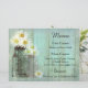 This delicate mint green mason jar and daisy wedding menu is part of a complete set.