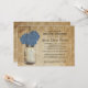 Perfect for a country style Bridal Shower or maybe you just love Mason Jars for any event! Mason Jar hanging on a hook filled with hydrangea flowers. A Rustic Antique distressed background with a hanging Faded Mason Jar and with deep blue hydrangea flowers. If you have any questions on this design or want a colour change please email me paula@labellarue.com Also check for the Wedding Suite, INVITATION, RSVP, RECEPTION and GUEST SEATING Cards to match!