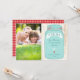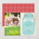 This rustic wedding invitation suite features a hand-drawn minty blue mason jar on a tree bark background. Hand-lettered type, the gingham pattern at the back and a tag attached with red & white bakers twine makes this a perfect choice for country theme weddings. Colours can be customized to suit your wedding's motif, just shoot me a message.