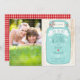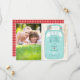 This rustic wedding invitation suite features a hand-drawn minty blue mason jar on a tree bark background. Hand-lettered type, the gingham pattern at the back and a tag attached with red & white bakers twine makes this a perfect choice for country theme weddings. Colours can be customized to suit your wedding's motif, just shoot me a message.