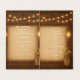 Élégant programme de mariage rustique avec jarres de mason brillantes, lumières à cordes délicates et un arrière - plan beige doux. Parfait pour les programmes de cérémonie de mariage plié, ce modèle comprend de l'espace pour votre ordre de cérémonie, de mariage et des touches personnelles. Un thème rustique intemporel idéal pour les mariages de grange, les célébrations en plein air ou les événements d'inspiration campagnarde.