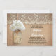 Cute rustic bridal shower invitation featuring mason jar with white hydrangea blossom. Perfect invite for country bridal shower with vintage lace and distressed wood accents.