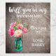 Rustic Mason Jar Will You Be My Bridesmaid Wine Label