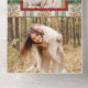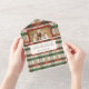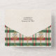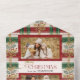 This warm, traditional design features two landscape-oriented photo templates, "Merry Christmas" custom text graphic in an elegant font with flourishes and editable text fields on a red/green/ecru plaid background with holly and pine. The panels feature additional text fields, complementary background graphics and a bonus tearaway photo.